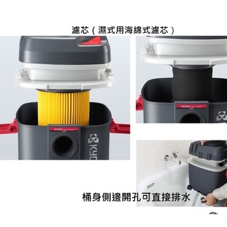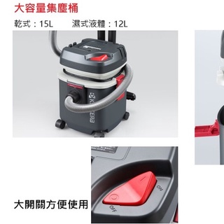 【如需統編結帳時請點選三聯發票】產品規格:型號:ACV1100電壓:110V / 60Hz馬達功率:1050W吸塵桶容量:乾式15L、濕式12L尺寸:345x350x435mm重量:5.5kg電源線長度:2.5m內附:軟管1.8m、乾濕兩用濾芯、主刷嘴、延長管x2、扁吸嘴