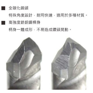 商品特色▼1.全碳化鎢鋼 : 特殊角度設計,耐用快速,適用多種材質。2.高強度鉻鉬鋼桿身 : 柄身一體成形,不易造成鑽頭晃動。